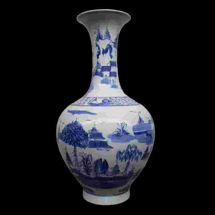 Barang Antik Guci Vas Porcelain Cina Lukis Biru Putih T.36cm Utuh