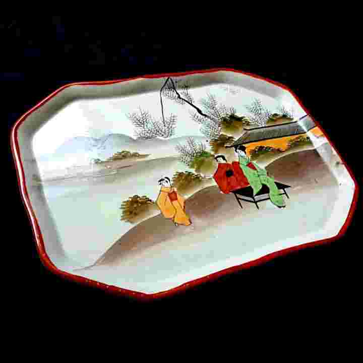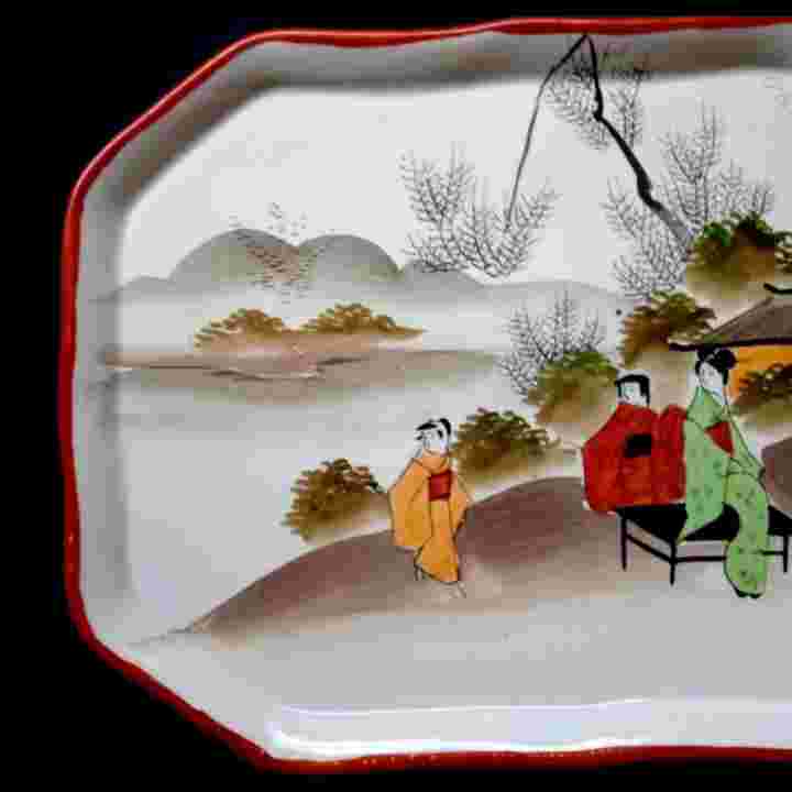 Barang Antik Nampan Saji Porcelain Lukis Kutani Jepang Utuh Tua Kuno