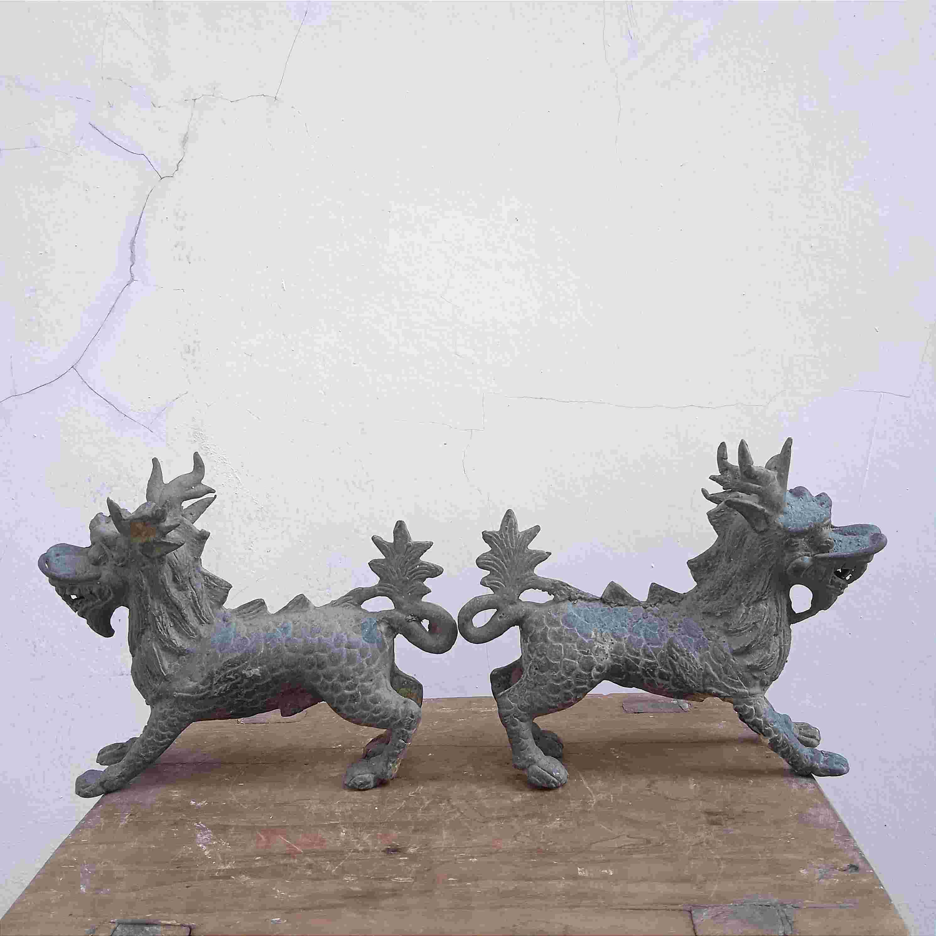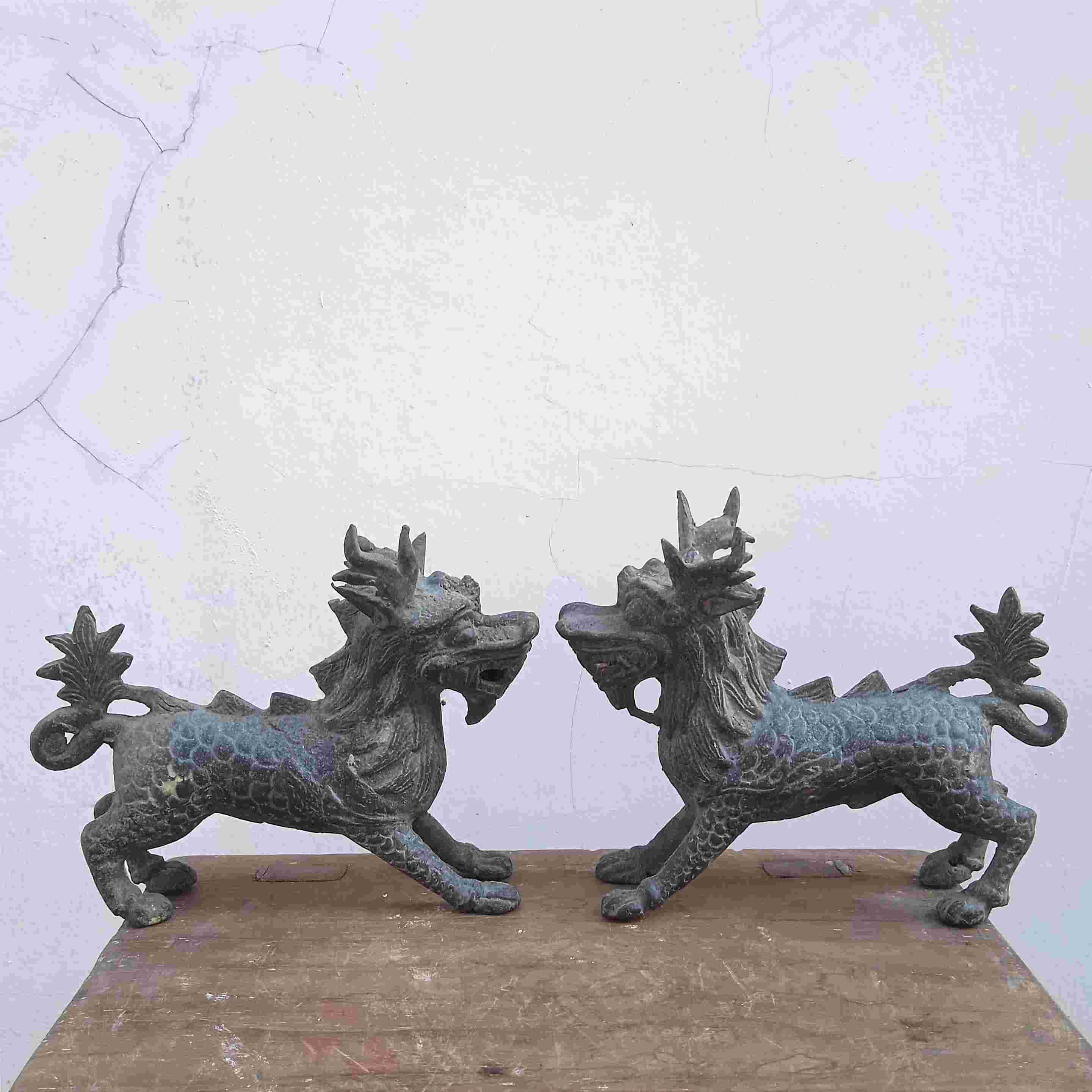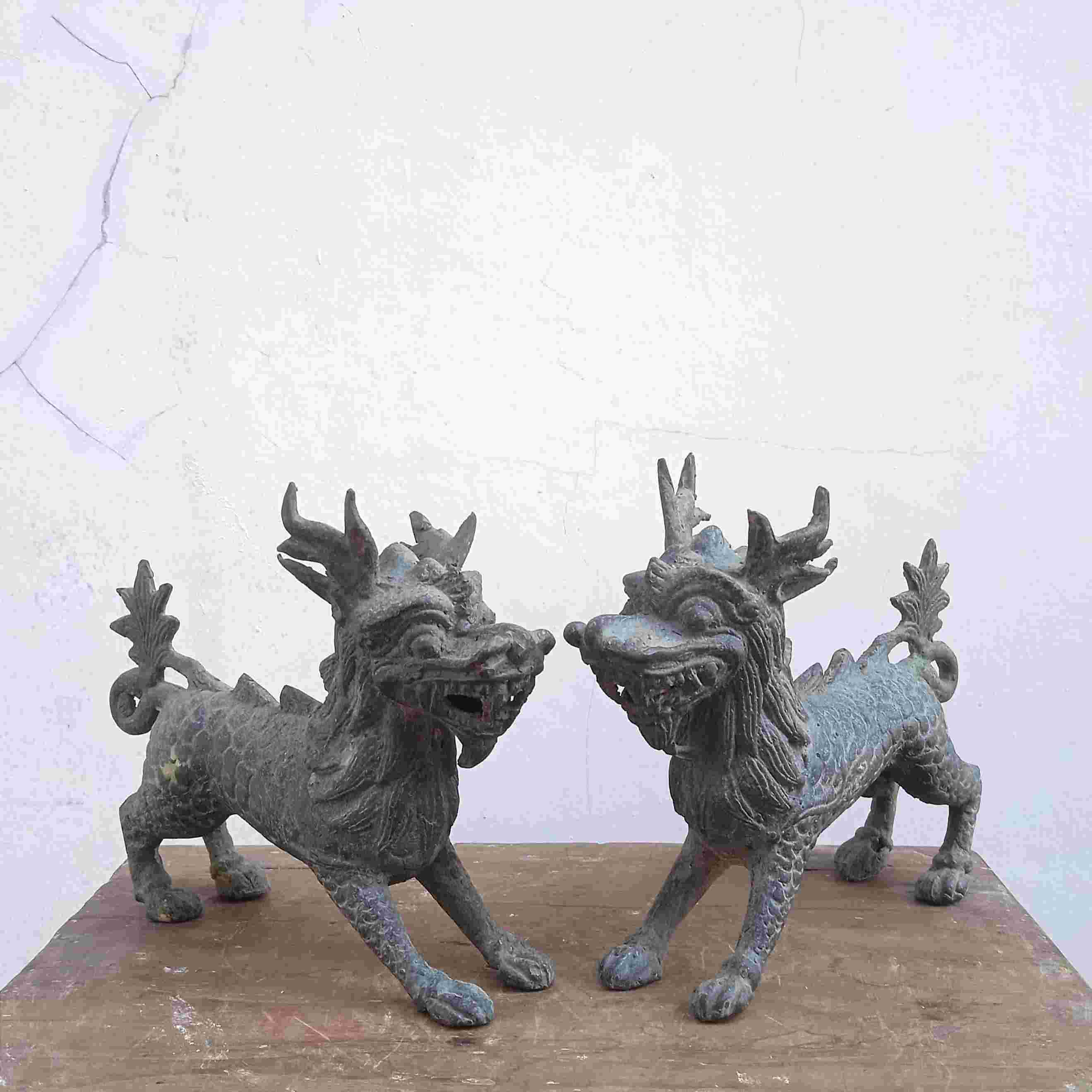 Barang Antik Sepasang Patung Kilin Perunggu Kuno Tua
