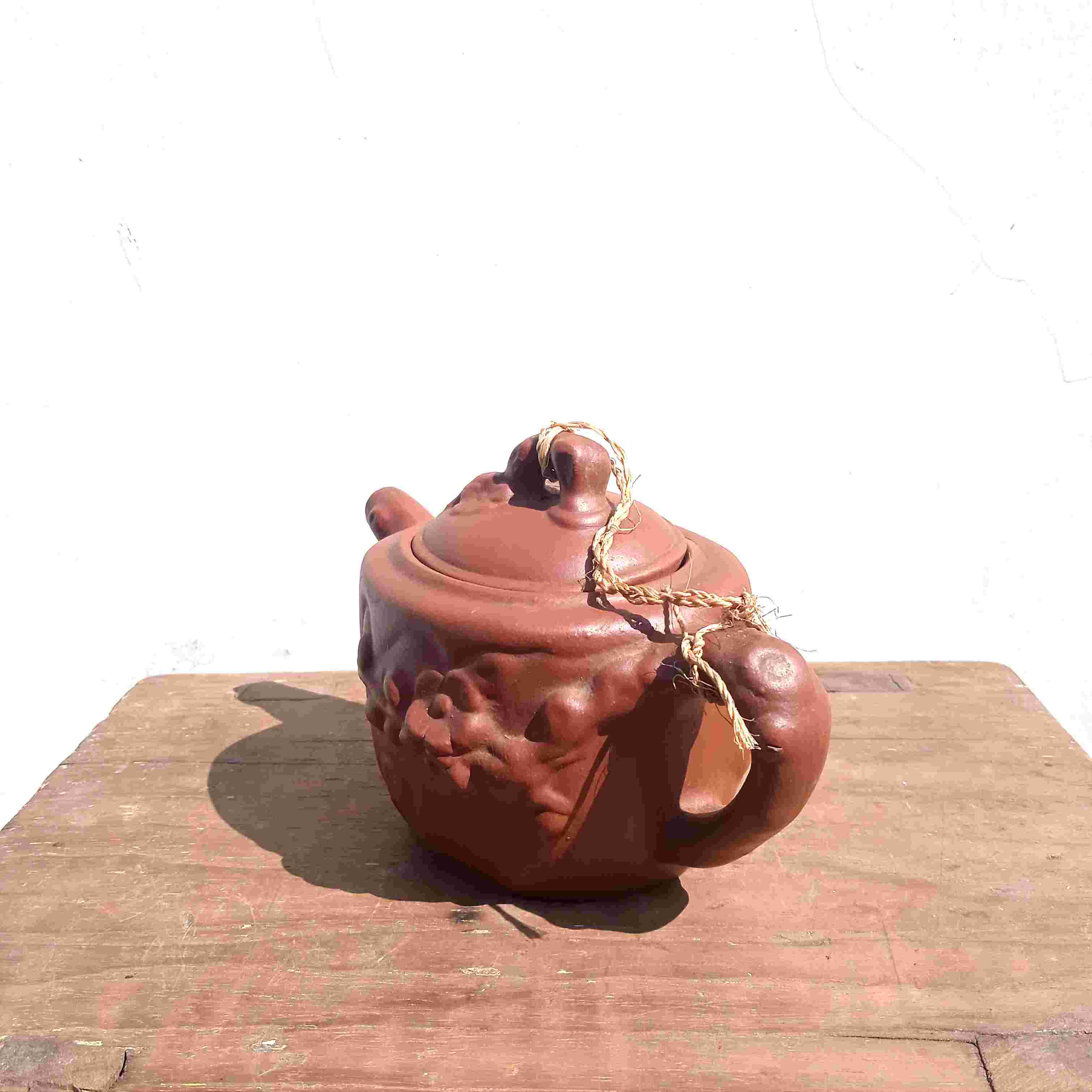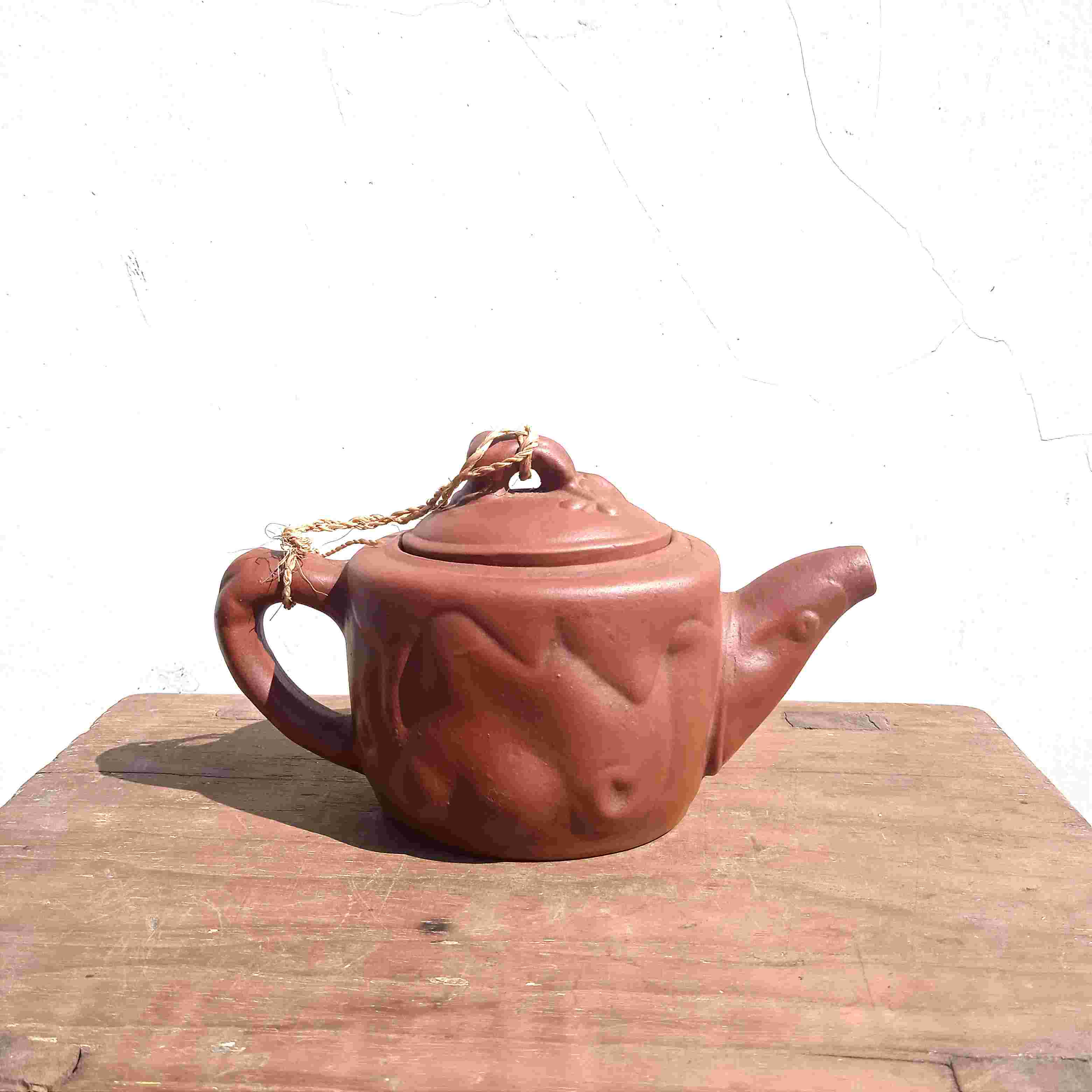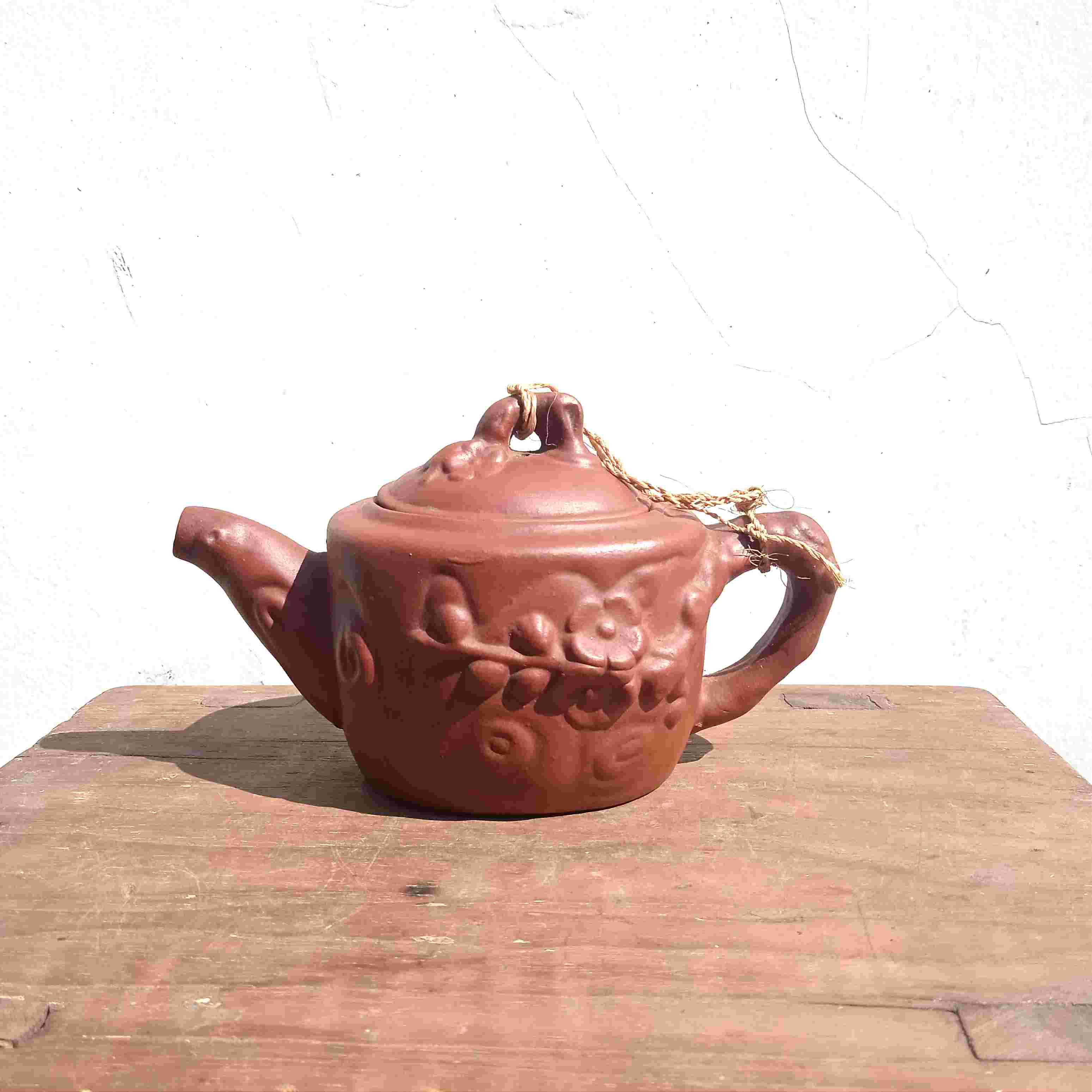 Barang Antik Teko Terakota Yixing Motif Bunga Timbul Utuh Tua