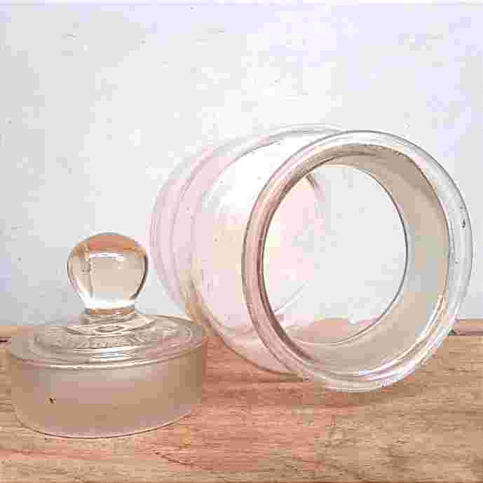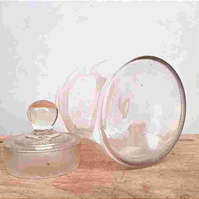 Toples Kaca Bening Eropa Merk Hamburg Hermann Heye Diameter : 12cm Tinggi Bersama Tutup : 19cm Kondisi Utuh Mulus