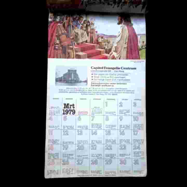 Kalender Lama Bahasa Belanda BIJBELTEKSTEN KALENDER 1979 Komplit Januari - Desember (1 Bulanan) Ukuran :23,5cm x 40cm Kondisi Utuh Minat Silahkan