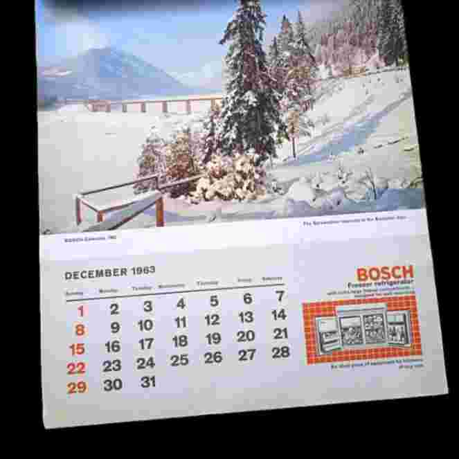 Kalender Germany Lama 1963 Robert Bosch GMBH Stuttgart Iklan Peralatan Merk BOSCH Komplit Januari - Desember (Bulanan, 12 Lembar) Kondisi Bagus Minat Silahkan