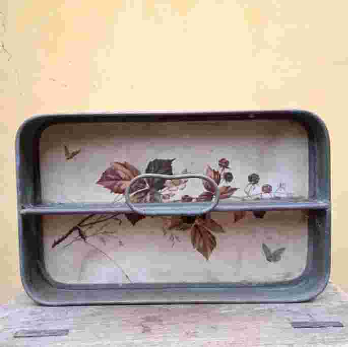 Barang Jadul Nampan Baki Eropa Kuno Bahan Keramik dan Kuningan Antik
