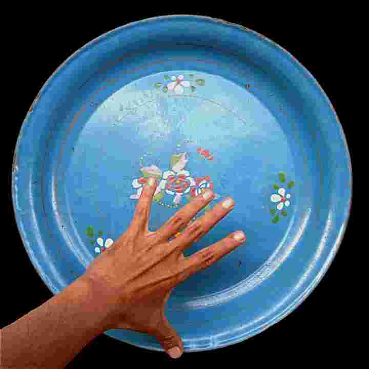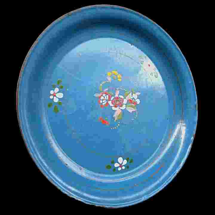 Barang Jadul Nampan Biru Enamel Lukis Timbul Kuno Tua Lama Antik