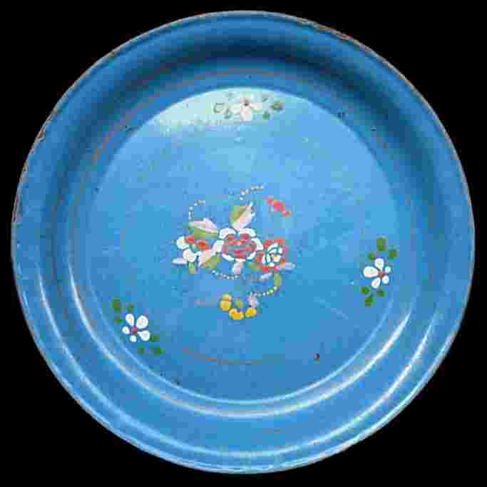 Nampan Enamel Biru Antik Lukis Timbul Diameter : 40cm Kondisi Utuh Minat Silahkan