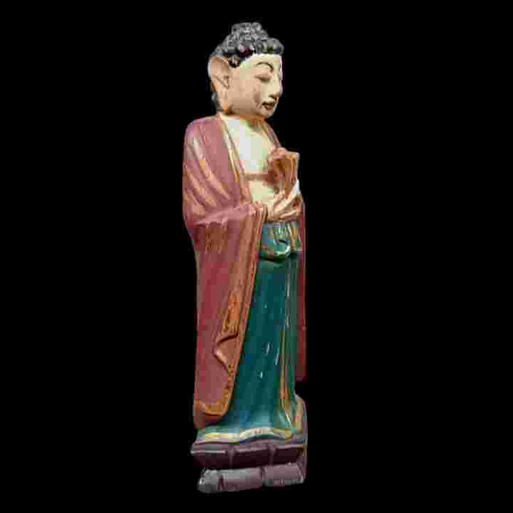 Patung Tua Chinese Buddha Bahan Kayu Cina Warna Original T.30cm Kondisi Utuh
