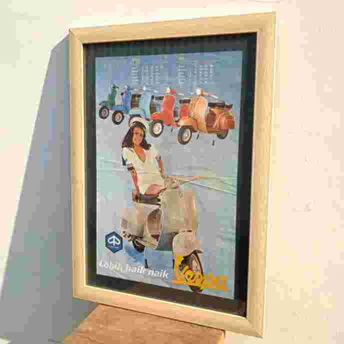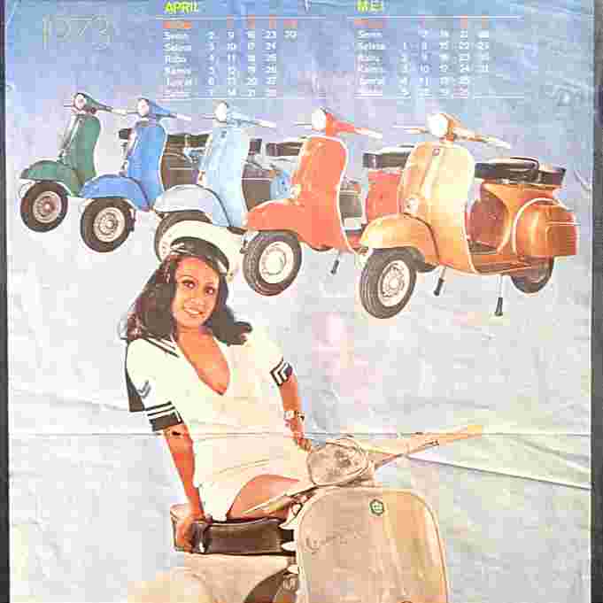 Poster Kalender Original Vespa Sprint 1973 Lebih Baik Naik VESPA Ukuran Besar Poster : 27cm x 42cm Framr : 38,5cm x 53xm Kondisi Utuh, Siap Pajang Minat Silahkan