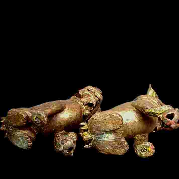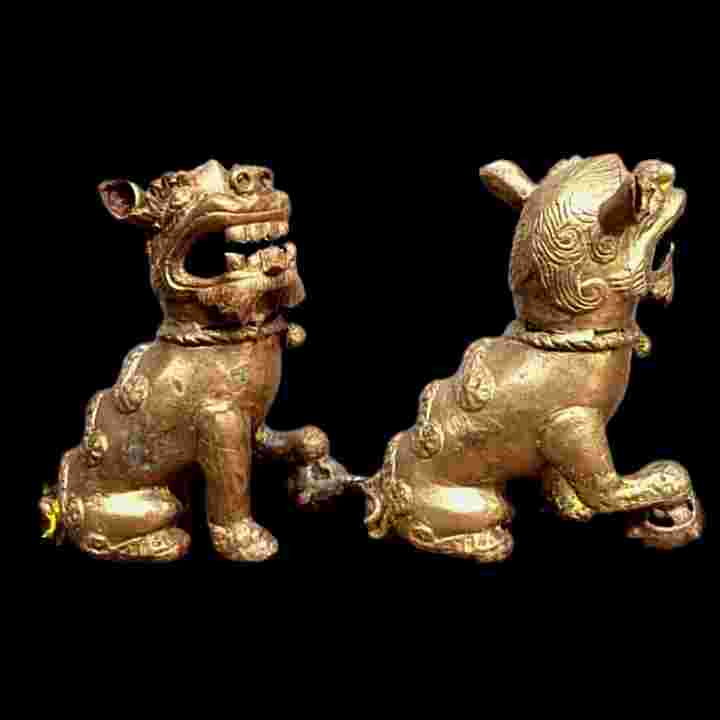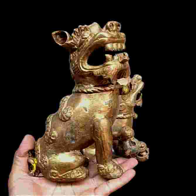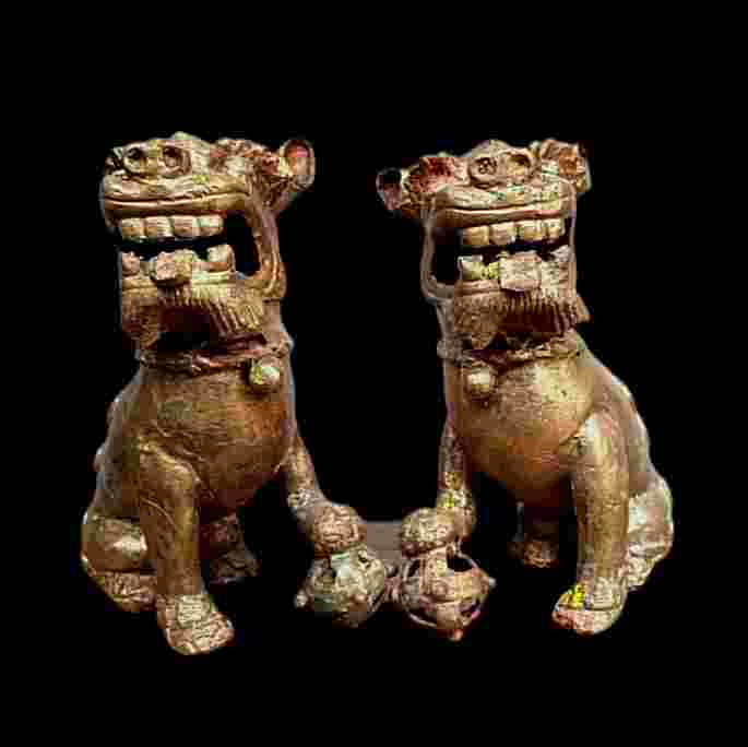 Barang Jadul Sepasang Patung Foo Dog Kuningan Utuh Antik