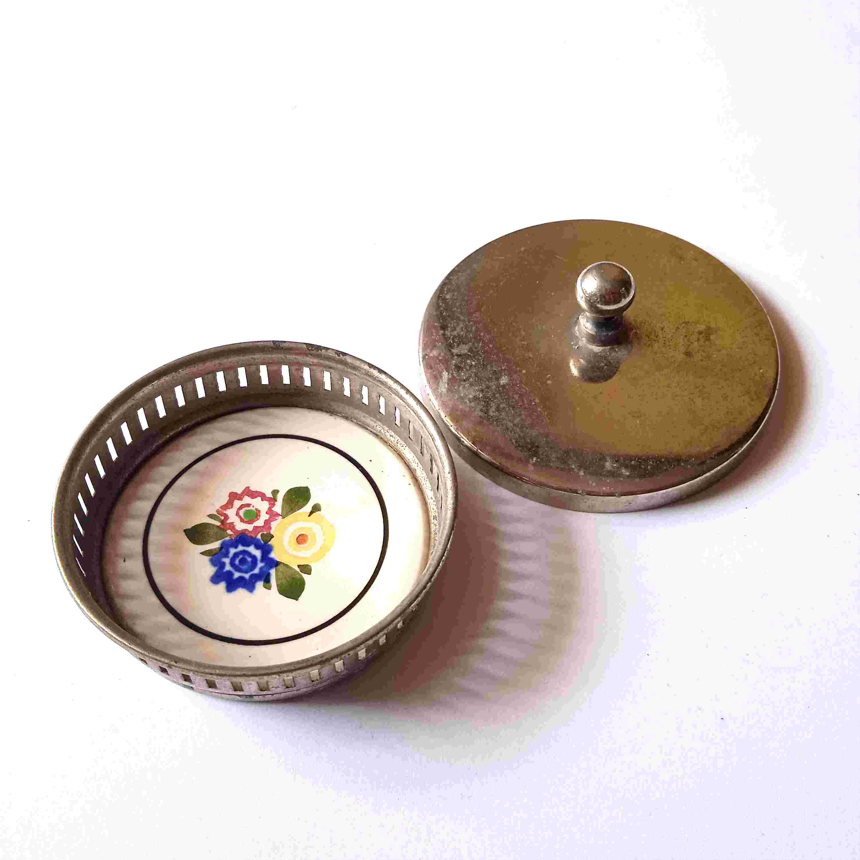 Tatakan Gelas Keramik Dan Tutup Gelas Lama Motif Bunga Diameter : 5,5cm Kondisi Utuh Minat Silahkan