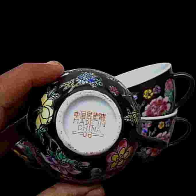 Barang Jadul Tea Set Porcelain Famile Noire Bunga Hitam Zhongguo Antik