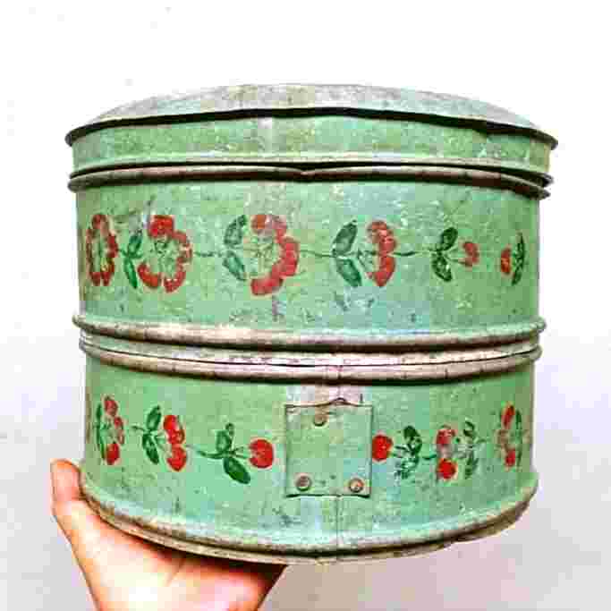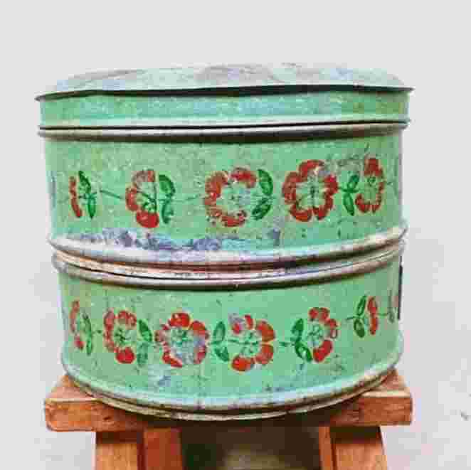 Barang Jadul Tenong Peranakan Seng Lukis Dua Susun Tua Antik