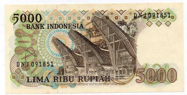 Bl 1879 Indonesia 5000 Rupiah Tahun 1980 Asah intan UNC Agak bergelombang