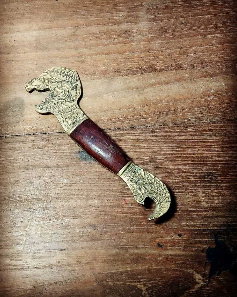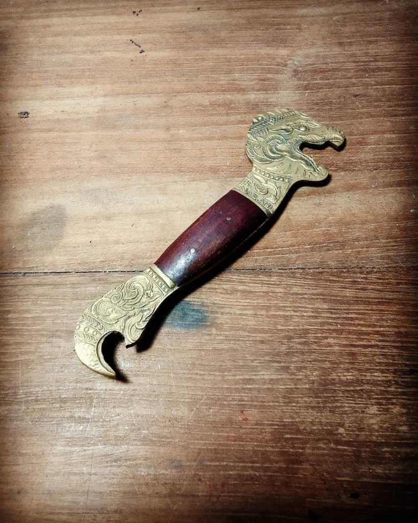 Botol opener Souvenir Thailand..Bahan kuningan gagang kayu.Kayak koleksi.Rp. 125.000,-