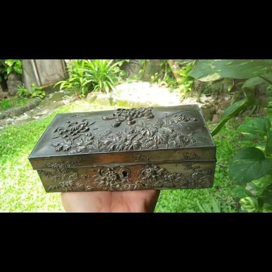 Box perhiasan.Origin: japan.18*9cm Tinggi: 5,5cm.Periode: 1930-1940.Material: alpaca with silver plated.