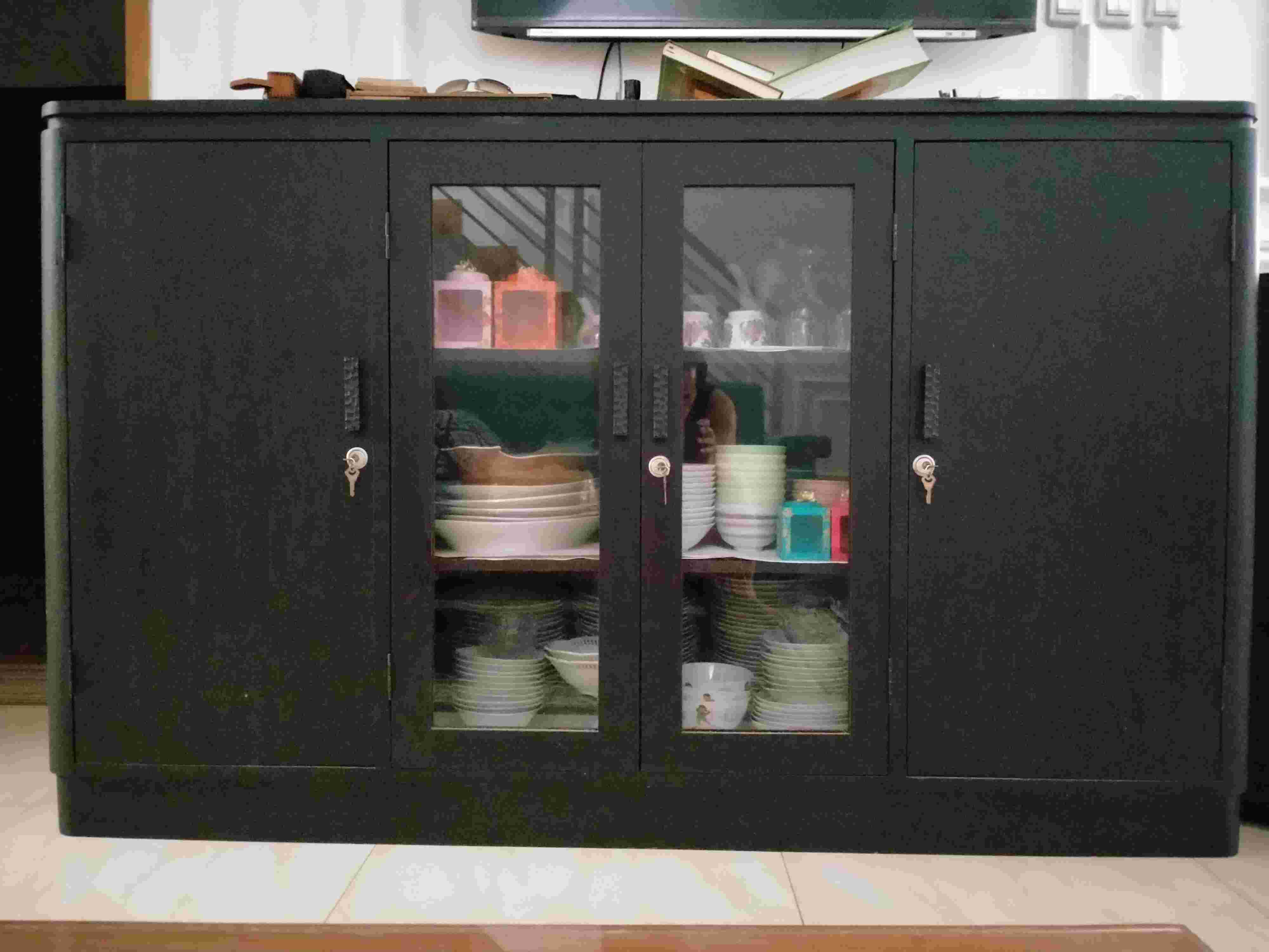 Buffet/ lemari dari jati lawas. Ukuran 180 x 55 x 110. Barang masih bagus, peninggalan orangtua. Sangat berat dan kokoh. Cocok sebagai furniture ruang tamu atau keluarga.