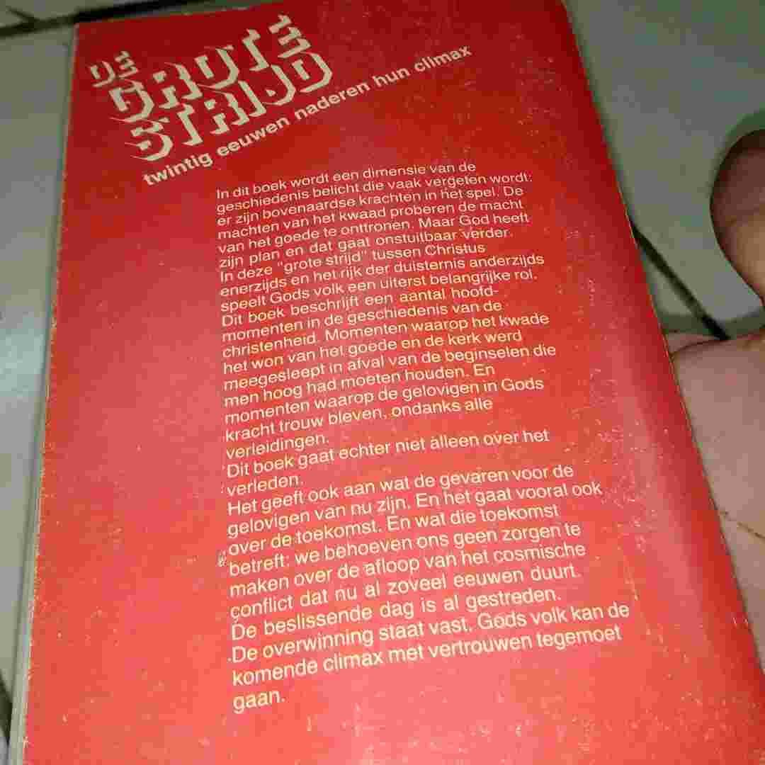 Buku DE GROTE STRIJD Door Ellen G White Harga Koleksi di OBRAL 40 ribu Terbitan DEN HAAG Tahun 1975 Soft Cover Tebal 656 halaman Dalam Bahasa BELANDA Seukuran BUKU Berat 600 gram Jadikan Diri Anda Kolektor...