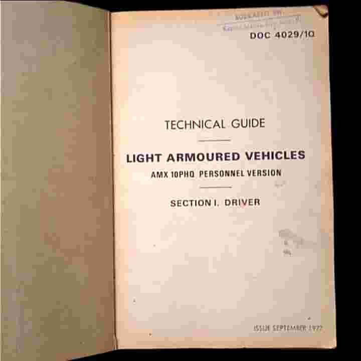 Buku Langka Ex Marinir Tentang Pengoprerasian Tank Technical Guide Light Armoured Vehicles Amx 10PHQ Personel Version Section I, Driver Banyak Foto September 1977 Kondisi Utuh, 85 halaman