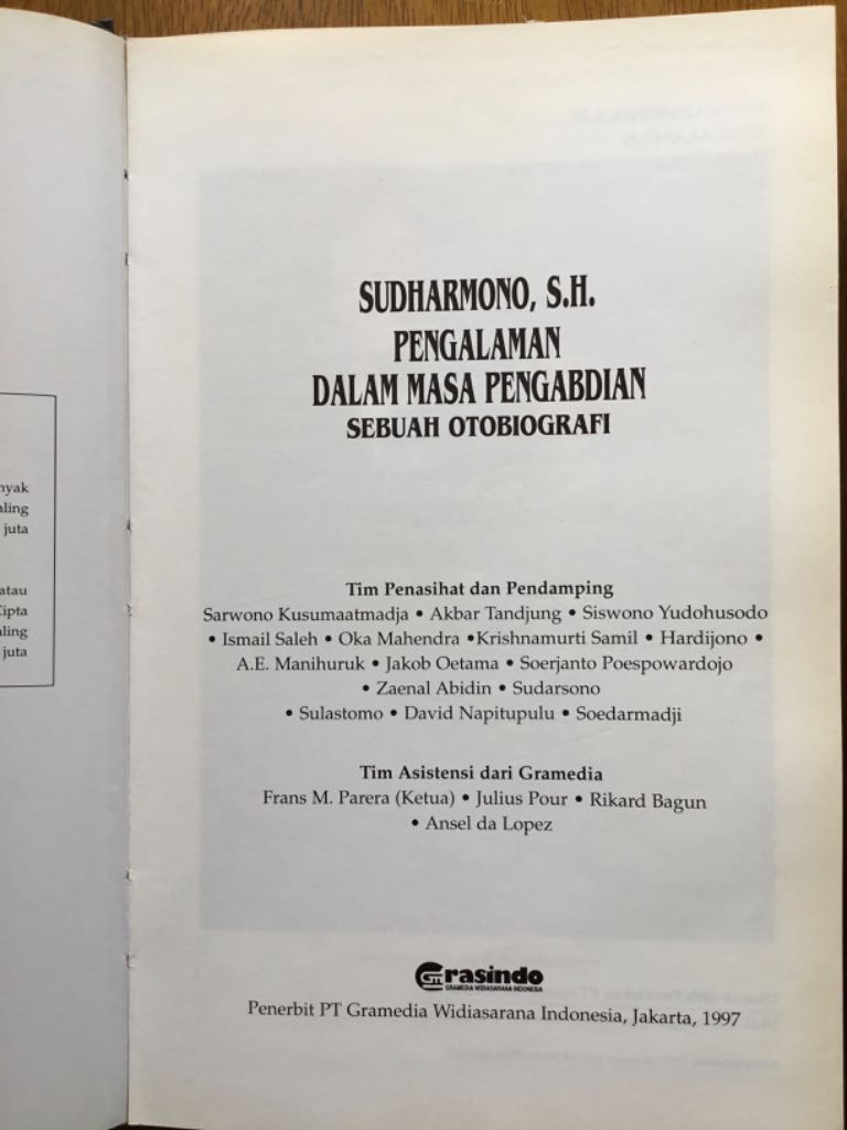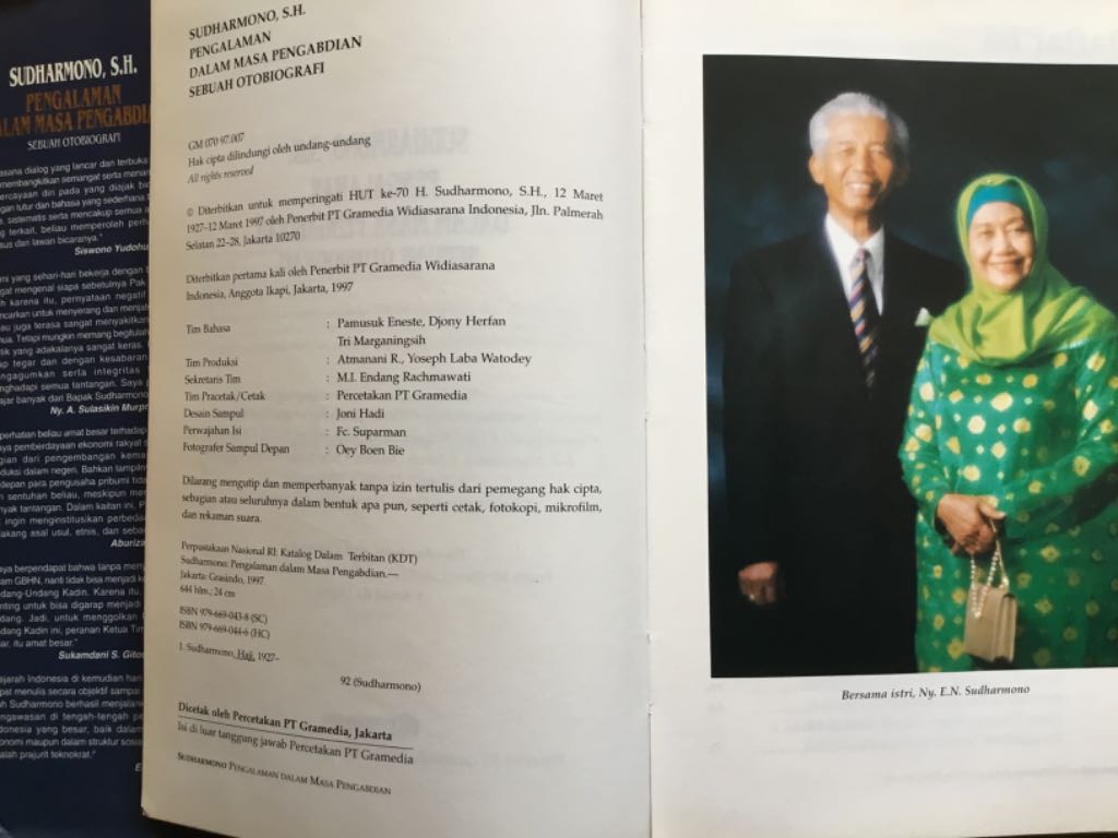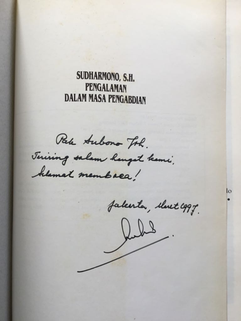 Buku koleksi ini ditandatangani langsung oleh pak Sudharmono yang ditujukan kepada pak Subono.