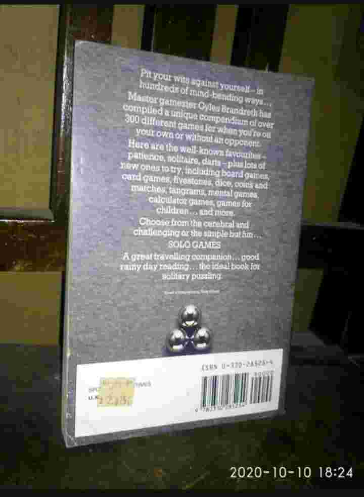 Buku SOLO GAMES By Gyles Brandreth Terbitan Pan Books London and Sydney Tahun 1984 Dalam Bahasa Inggris Tebal 223 halaman Berat 200 gram Moga Bermanfaat
