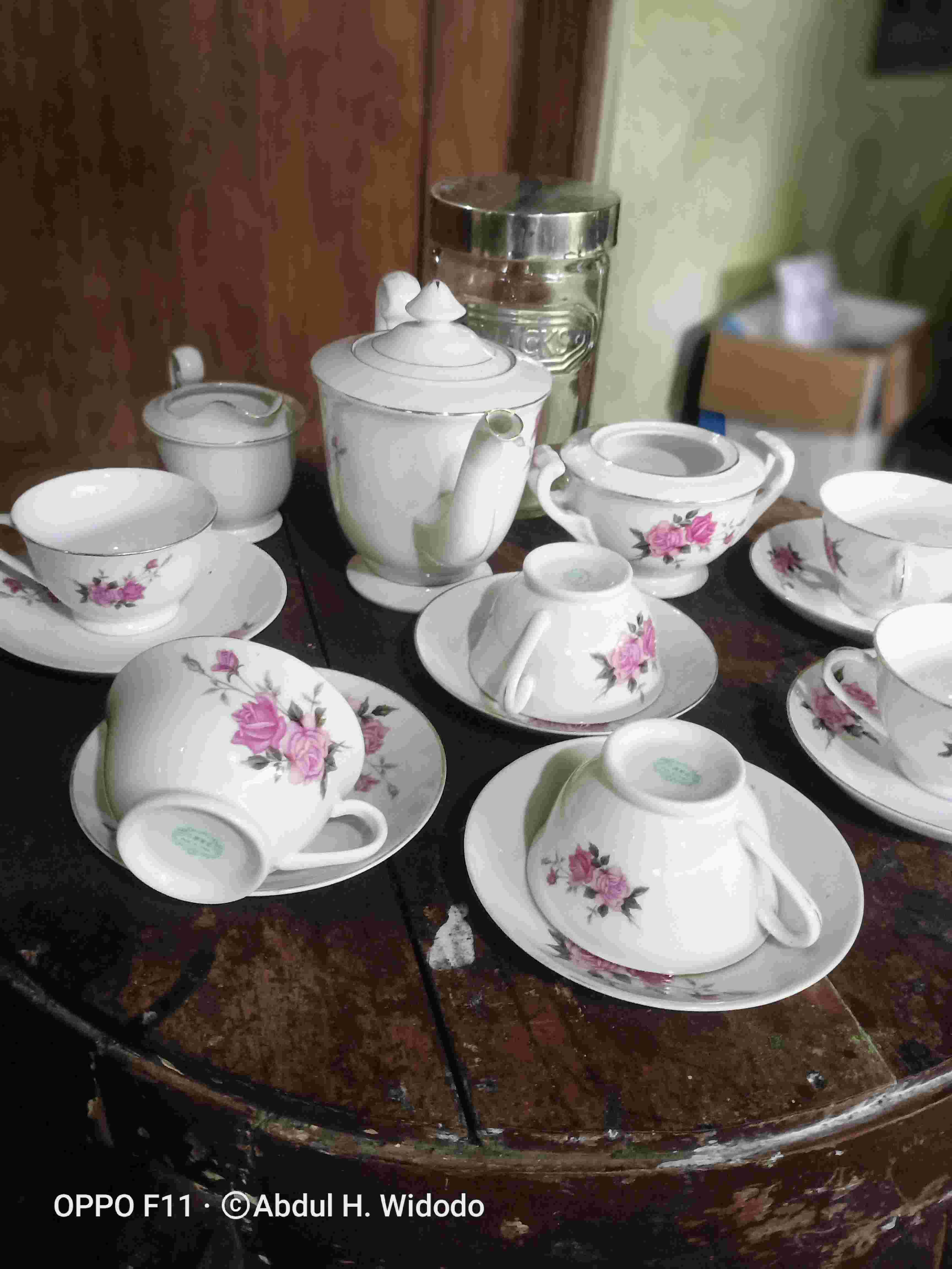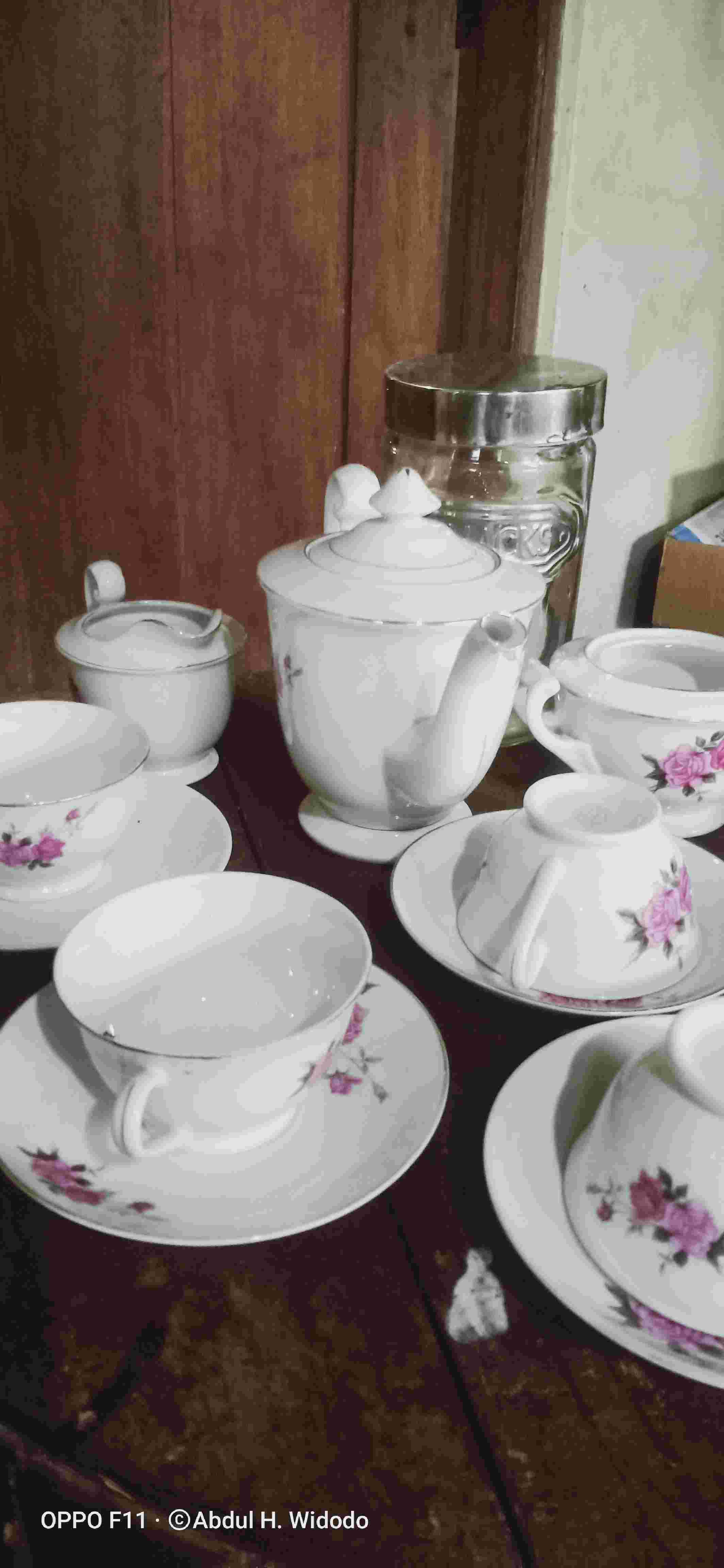 Full set...6 pasang cangkir lepek, 1tea pot, 1 mild pot,1 cream/milk pot... Toples snack tidak termasuk
