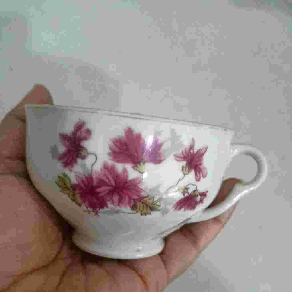 Cangkir kuno motif bunga seruni (2)