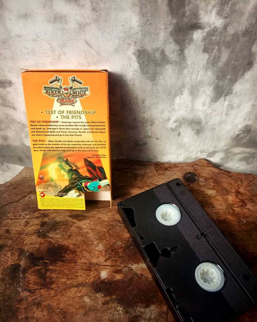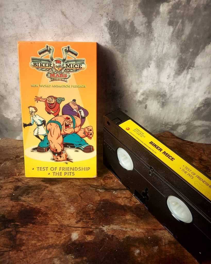 Casette Video cartoon VHS "Biker Mice from Mars".Kondisi masih bagus.., bisa buat di pajang bersama koleksi casette video lainnya, dan masih bisa berfungsi jika anda punya Playernya.