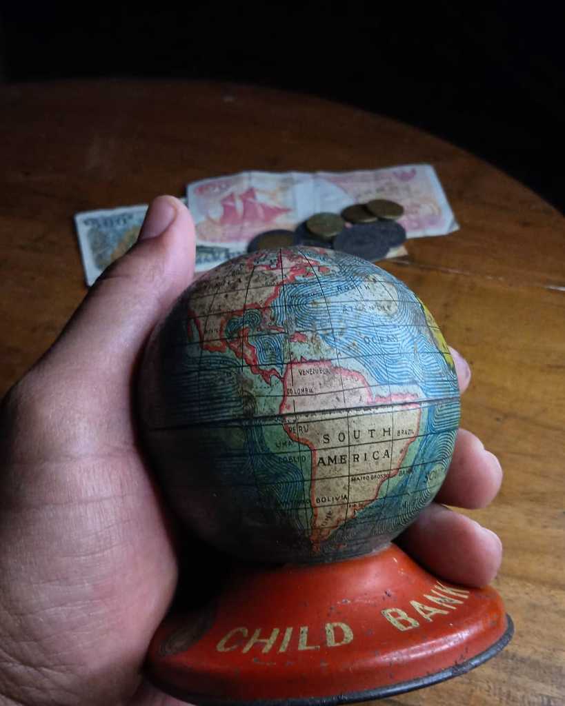 Celengan "Globe".. Tin Money Bank.. Merek 'Pretty Boy'.