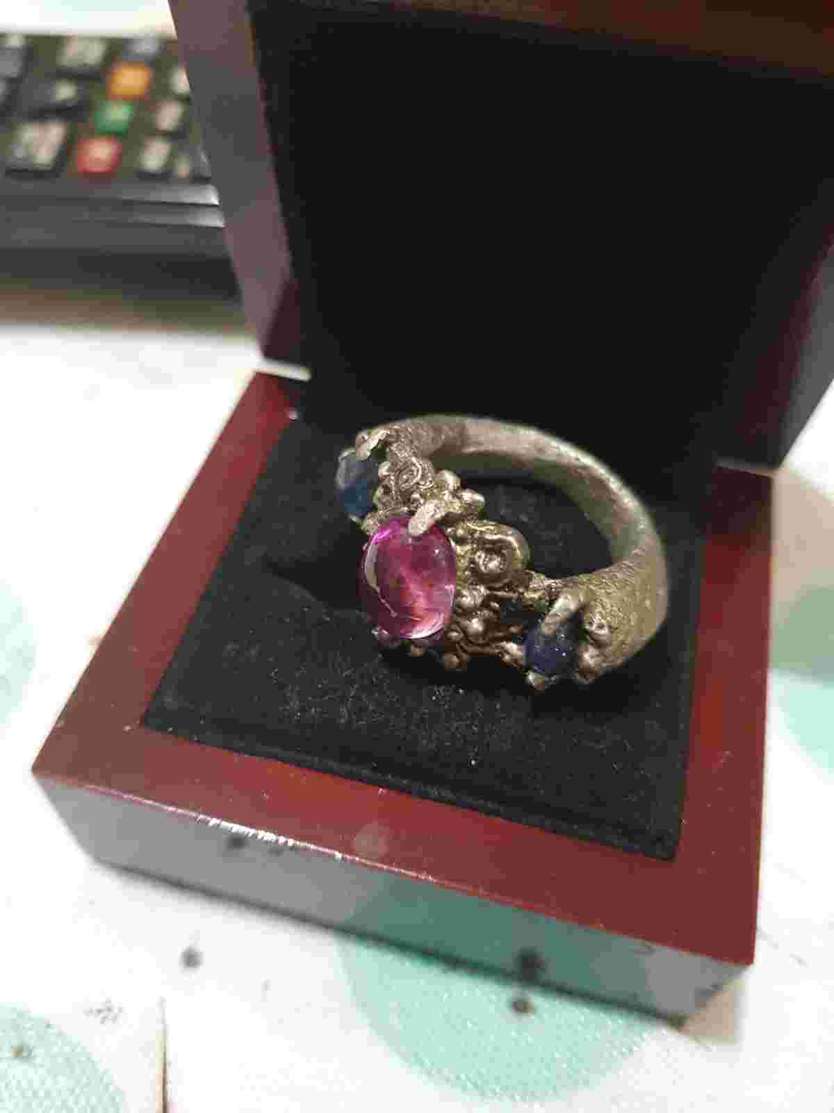 Cincin temuan darat jaman majapahit. Bahan perak batunya bawaan asli pink sapphire dan blue sapphire dulu beli di om rivo ethnic indonesia monggo bila minat boleh langsung inbox Lokasi karawaci tangerang