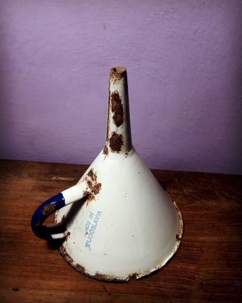 Corong minyak enamel, buatan Hungaria,Kondisi seperti di foto.