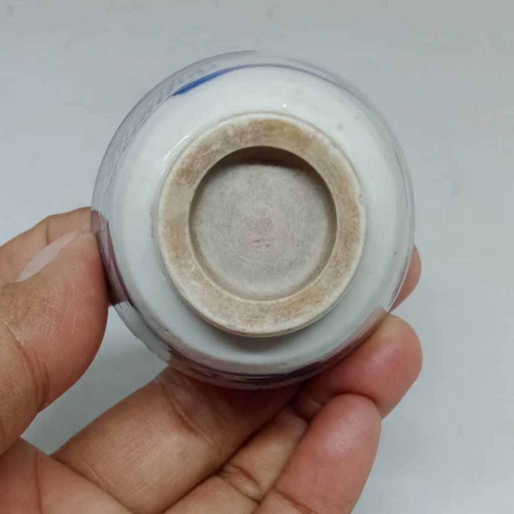Cucing Ketjil tua lukis burungDiameter 5,5 cm T. 4 cm( ada cuil sedikit di bibir luar ).