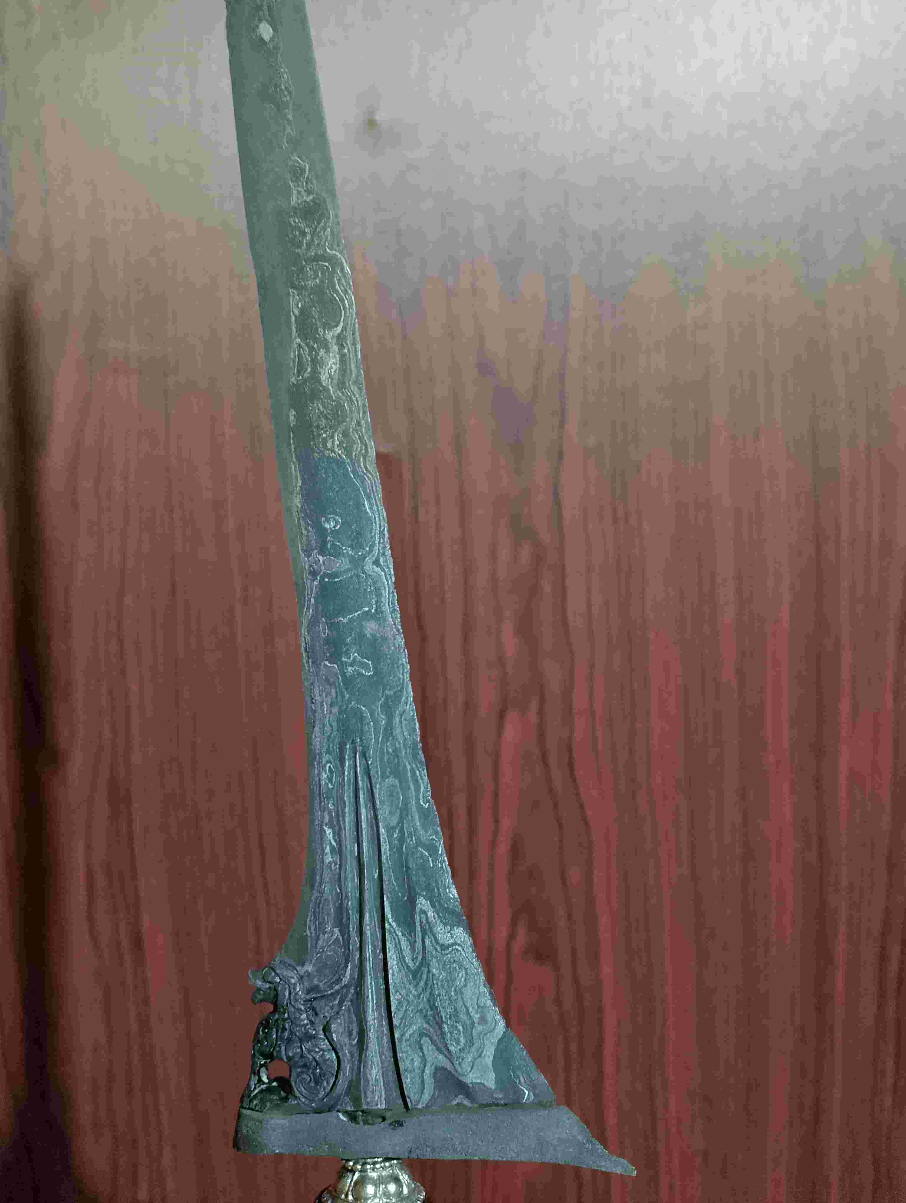 Dapur keris singo barong lurus, pamor Woswutah, estimasi Cirebon, warangka gayaman solo kayu timoho bathok.
