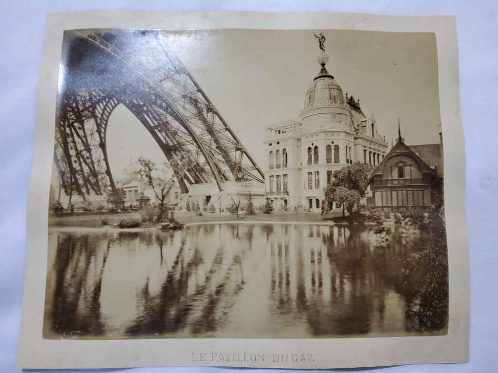 Foto Antik / Foto Kuno "dua muka" (Le Pavillon Du Gaz - Pavillon de L'Equateur et le Bresil); estimasi tahun 1900-an awal; ukuran 28cm x 22,5cm