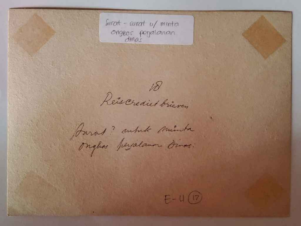 Foto " Reiscrediet Brieven" ruangan Surat untuk meminta ongkos perjalanan dinas.