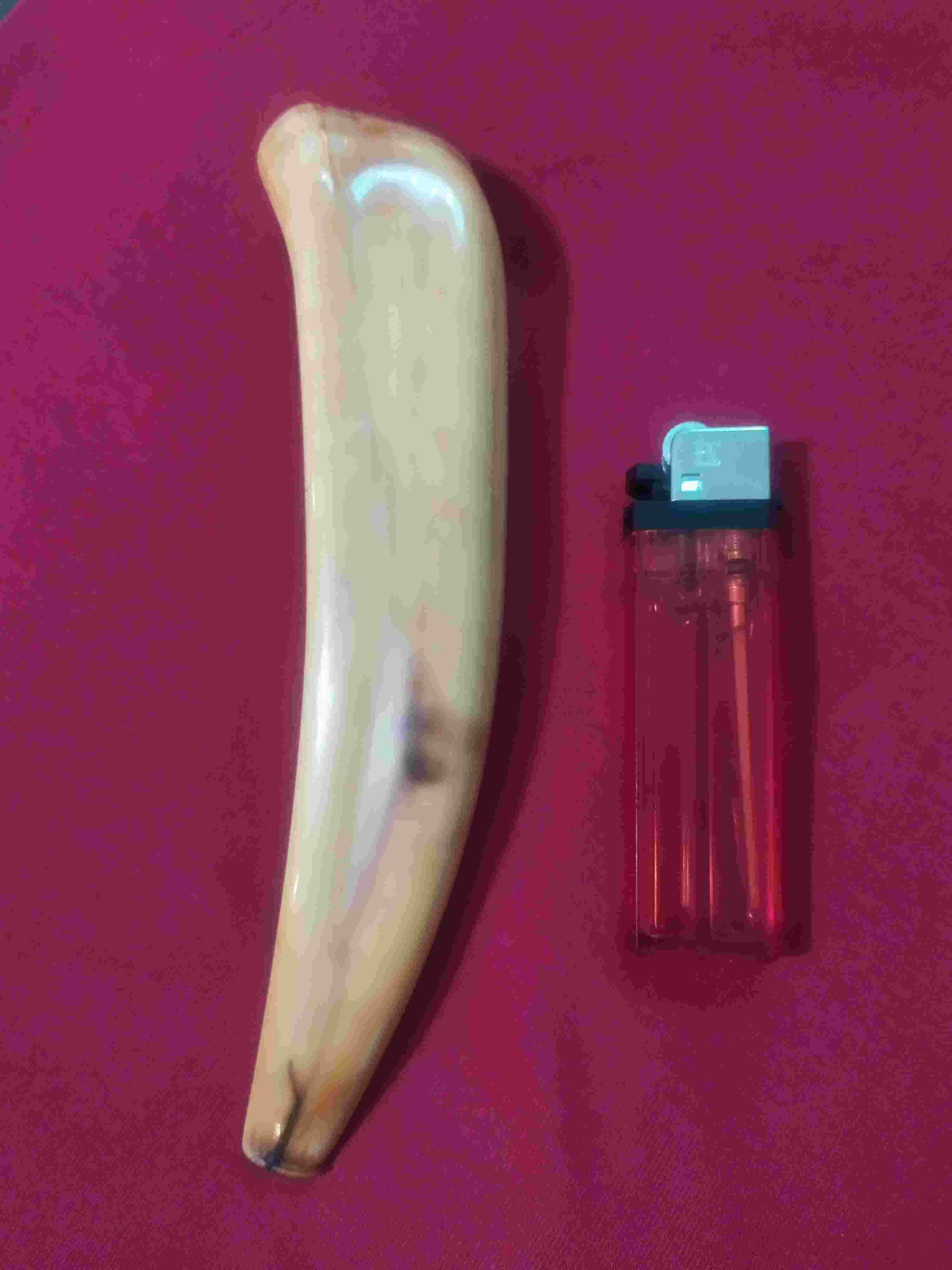 Gading gajah muda, umur sudah tua, panjang 17cm, lebar depan 3,5cm, lebar belakang 1cm,.barang warisan