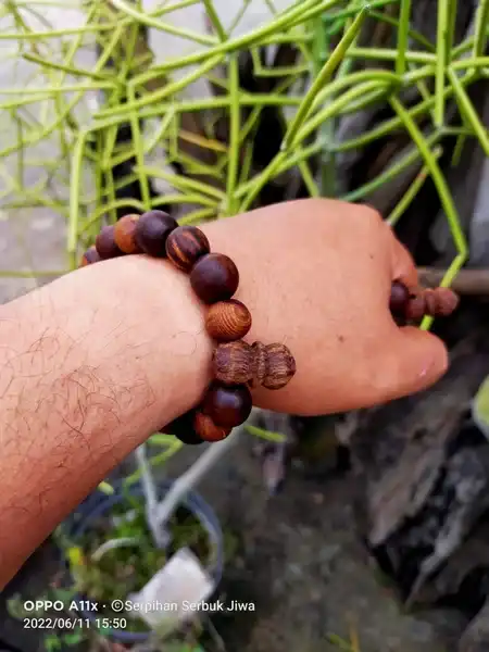 Gelang SUKMO SEJATISize 15mmKombinasi.1. Galih kayu Jin gunung merapi. Dibagian pembatas.2. Galih kayu ngurak kamboja JOKO Tingkir.3. Kayu Ringin sepuh Mataram Sunan Kalijaga.