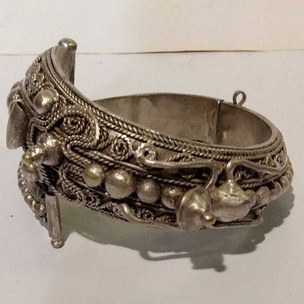 Gelang unikFull motif ukiran sangat halus dan detailBahan Kuningan lapis perak..