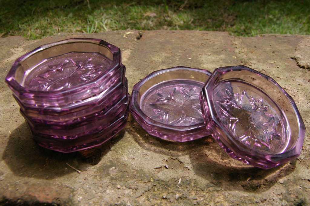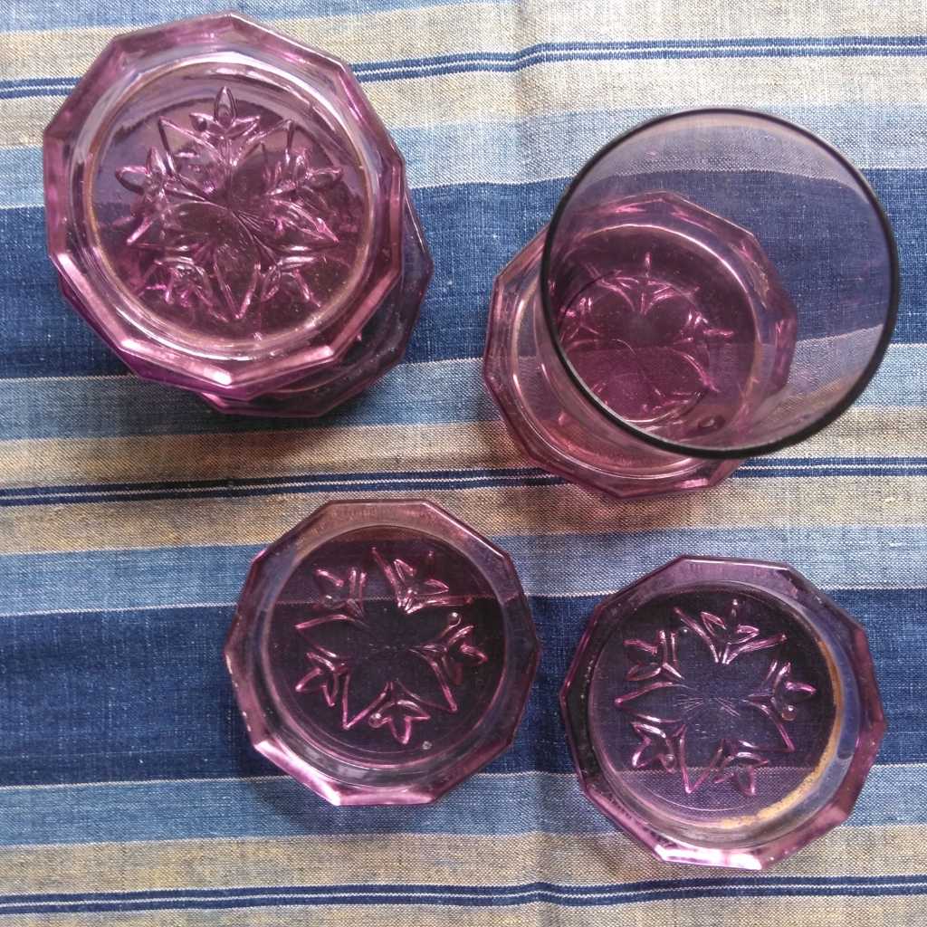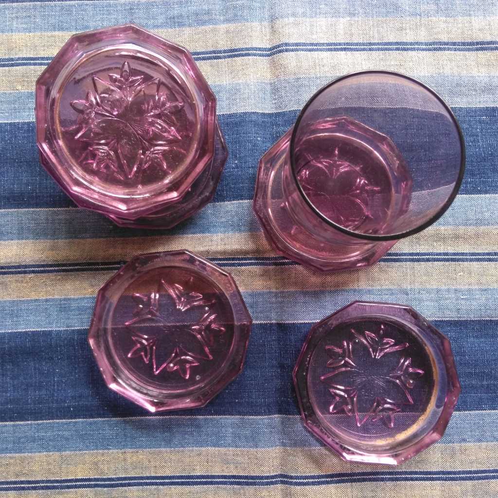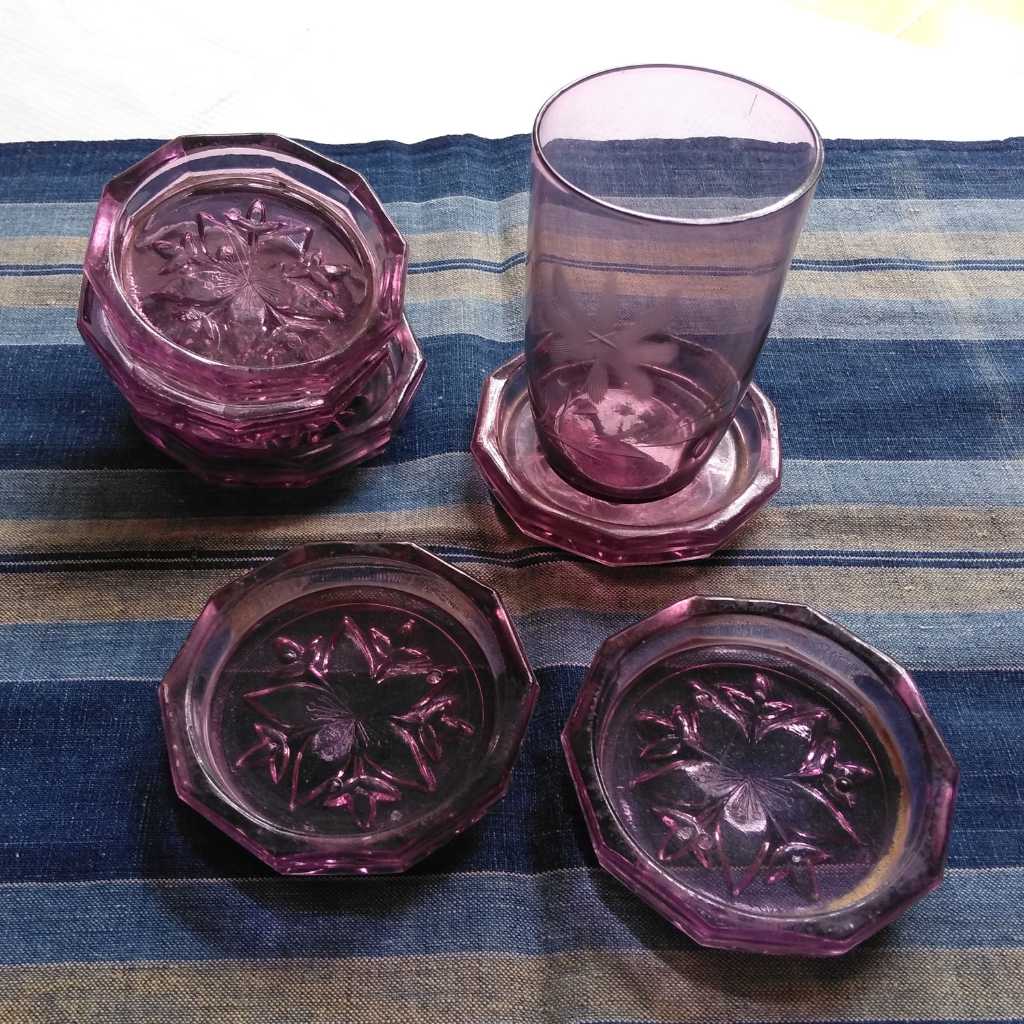 Old tatakan gelas 6pcs & old gelas 1pcs set 1950s, harga untuk SET,Ukuran diameter 7.5cm, gelas diameter 5.5cm x 9cm