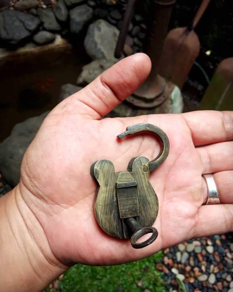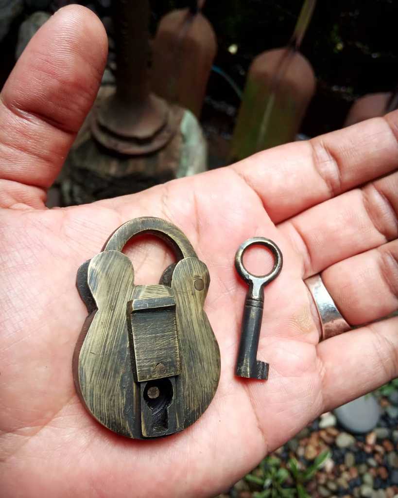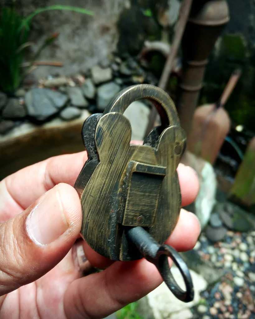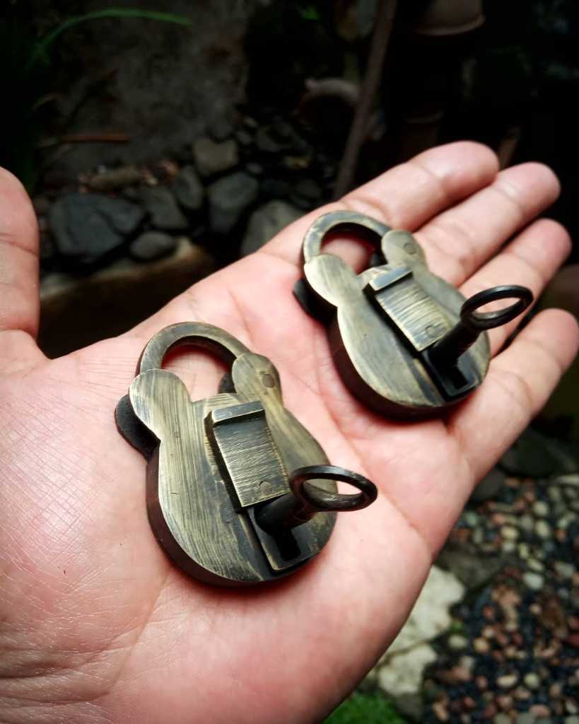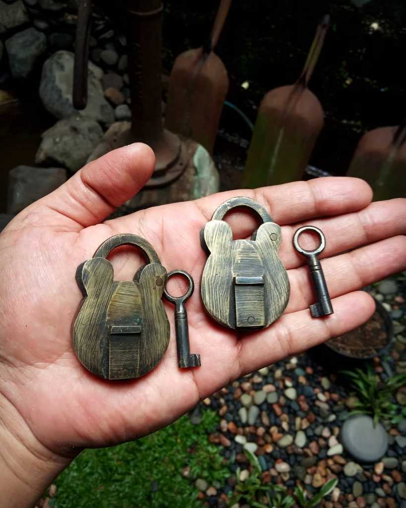 Gembok lawas. Sepasang berikut anak kunci.