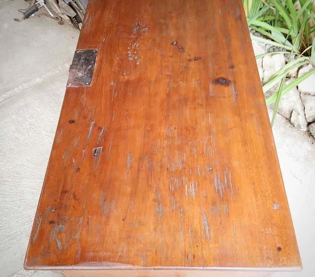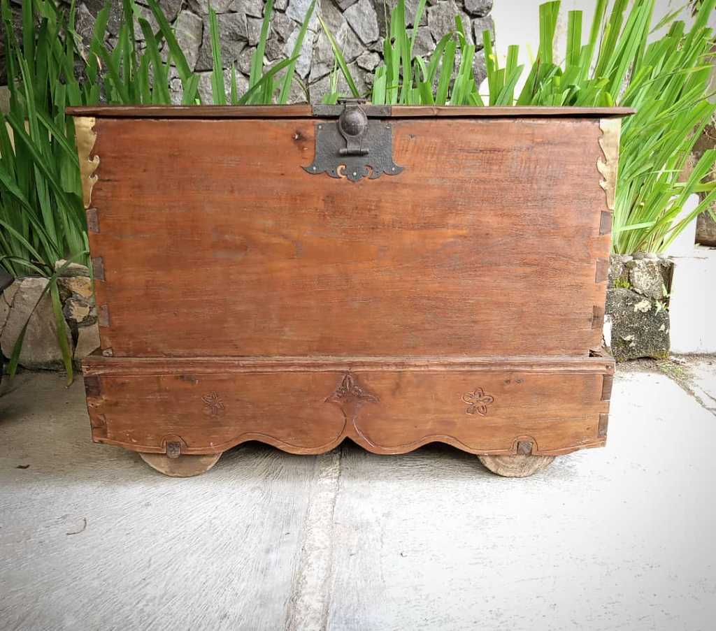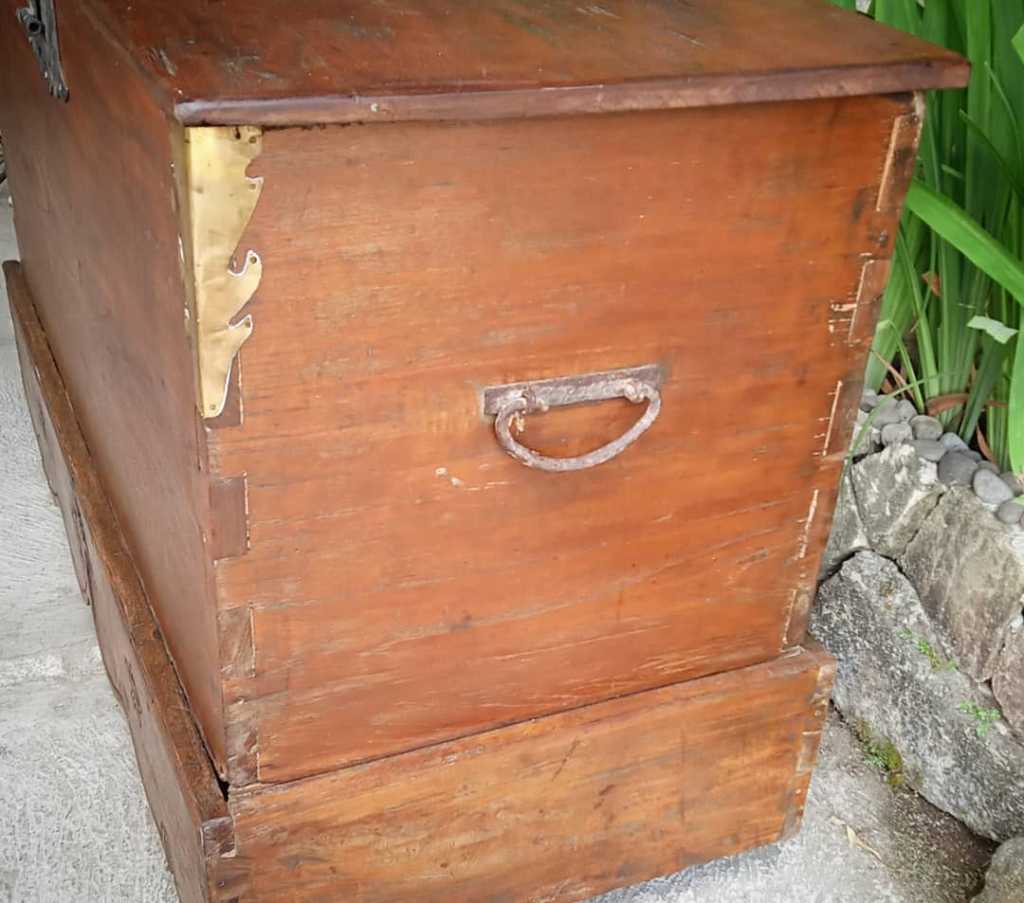 Gerobok.Material: Papan jati lembaran 6 sisi.Dimensi: P.103 cm, L.50 cm, T.75 cm.