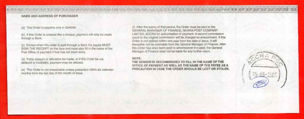 Ghana Postal Order 10000 Cedis 15.09.2005