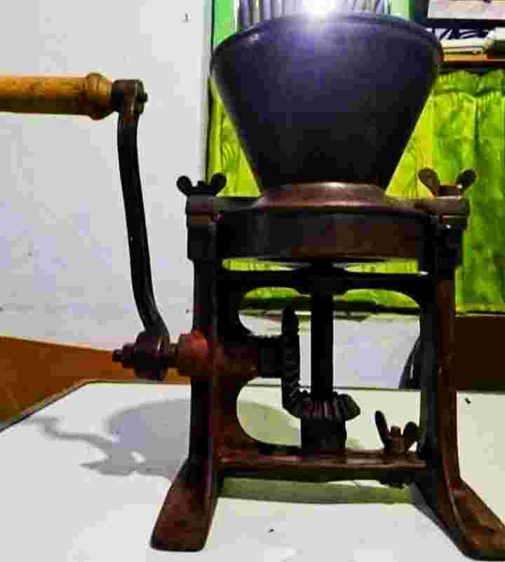 Alat penggilingan kopi manual antik, masih berfungsi dengan baik dan normal,ada pengaturan untuk hasil kopi yang diinginkan halus, sedang atau kasar,