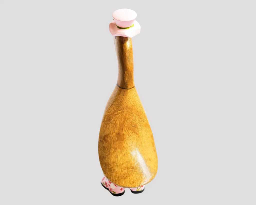 Drinking Duck Bottle Holder Wine Bottle Stand Hand Carved Fair Trade Wooden Bamboo Root Sculpture With Paint
