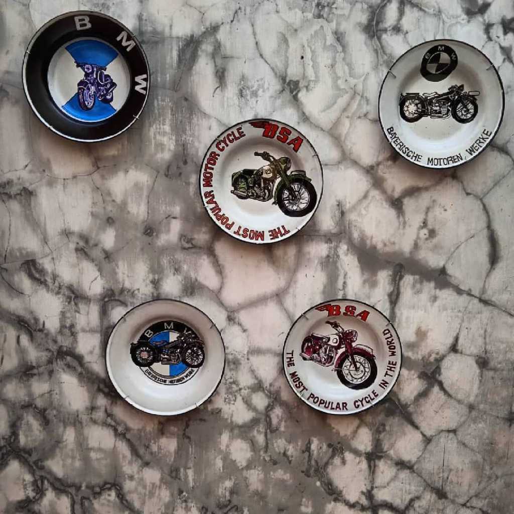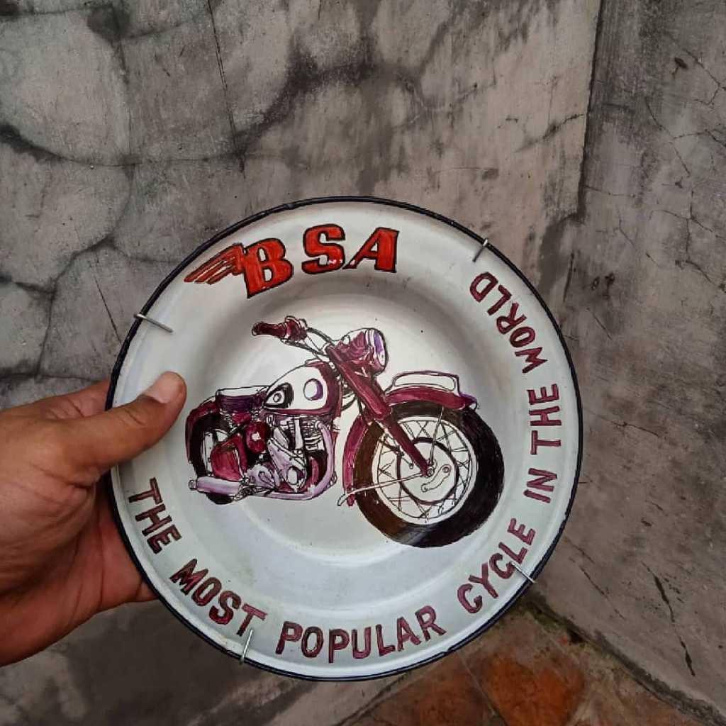 Garapan rapih.., Gambar bagus.., tema motor classic.., piring lawas..