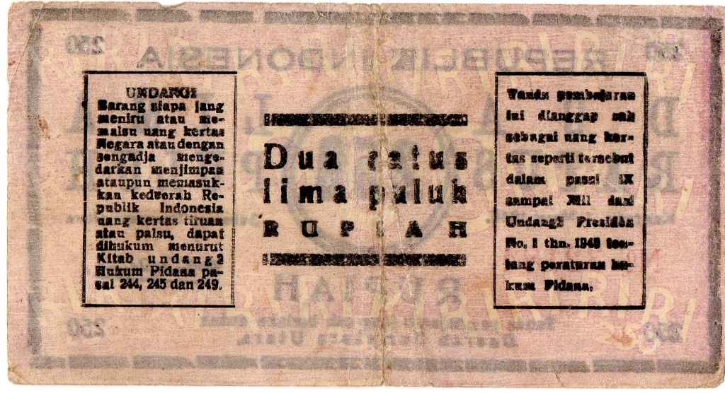 Indonesia - North Sumatera 250 Rupiah 01.03.1949