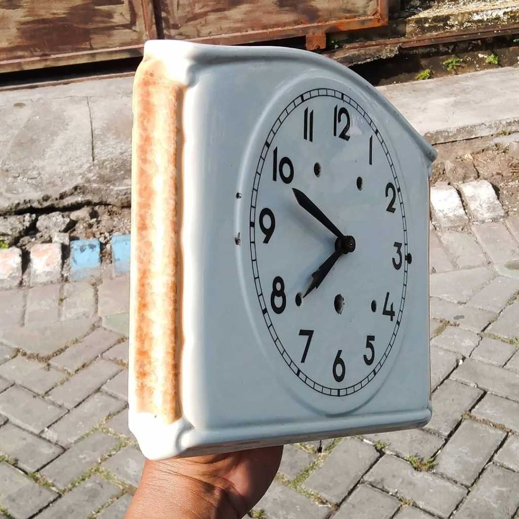 Jam dinding keramik lubang satuKondisi utuh mulus, normal berfungsi