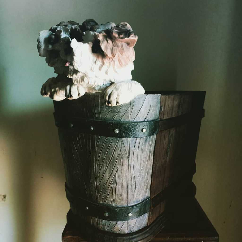 KERANJANG ROTI/ ATAU KERANJANG KORANMOTOF 2 ANJINGBAHAN ANJING RESIN DAN BAGIAN BOX BAHAN KAYUKONDISI BAIKUTUHSIAP DISPLAY