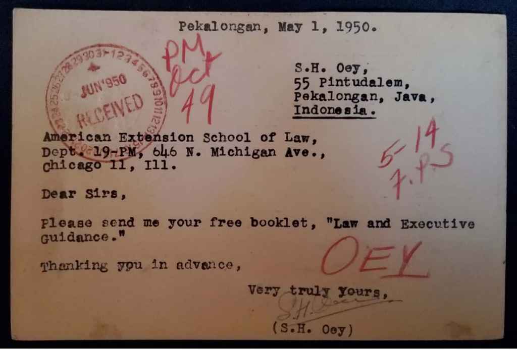 Kartu POs "BRIEFKAART - KAROESPOST; perangko NED INDIE 7,5 Sen dan 5 Sen ; Pekalongan, 1 May 1950