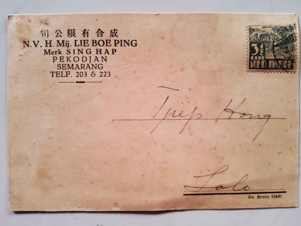 Kartu Pos "N.V.H Mij. LIE BOE PING"; Perangko NED INDIE 3,5 Ct: Semarang,