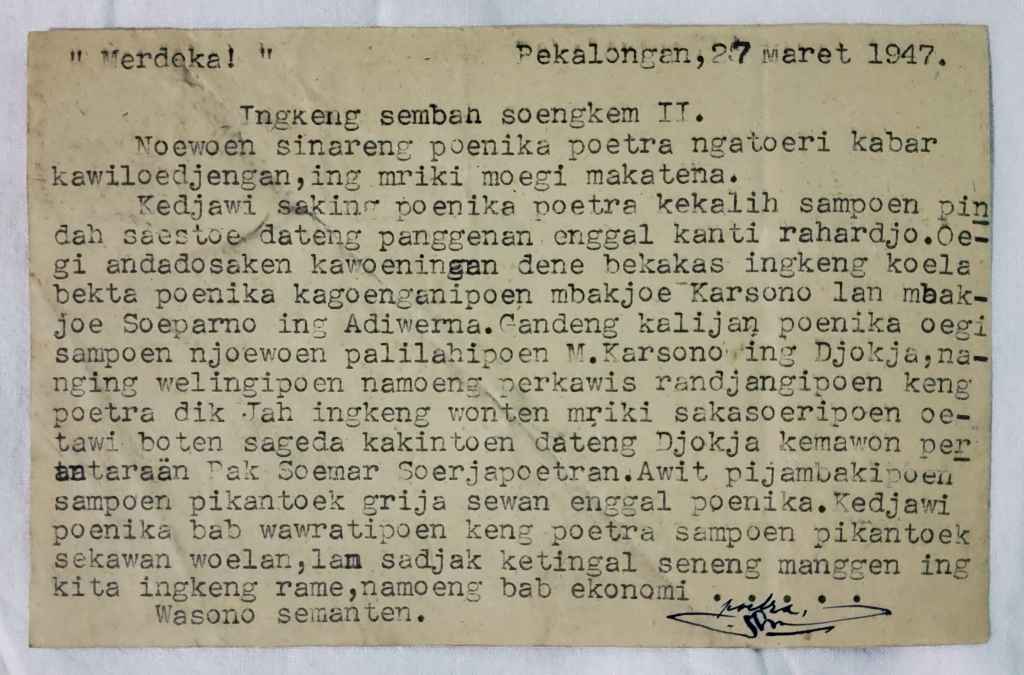 Kartu Pos Revolusi; Pekalongan 27-3-'47